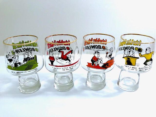 Fred Press Signed Mid-Century Blue Fish Glasses (Set of 4)